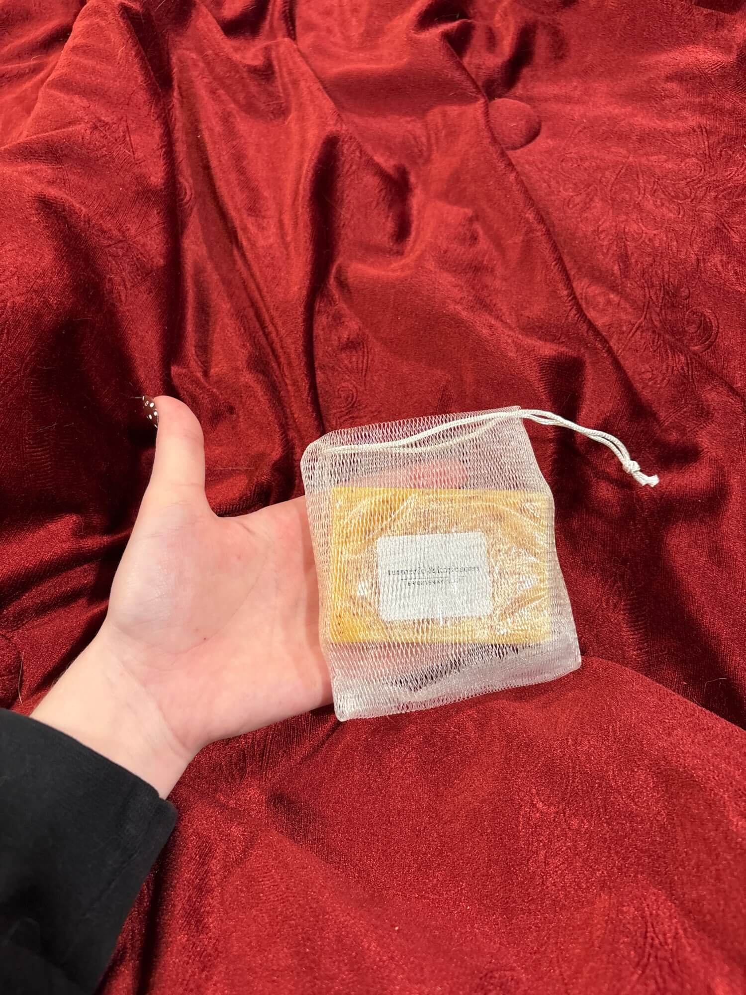 - Aplica el Jabón Luz de Oro frotando por 20–30 segundos hasta formar espuma.